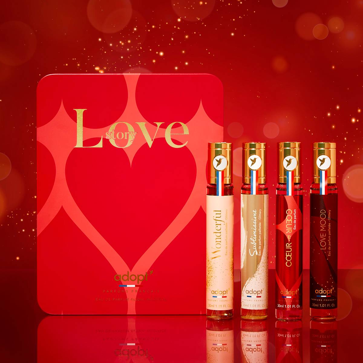 Love Story Metalen doos van 4 eaux de parfums Wonderful 30ml + Sublimissime 30ml + Coeur à Coeur 30ml + Love Mood 30ml