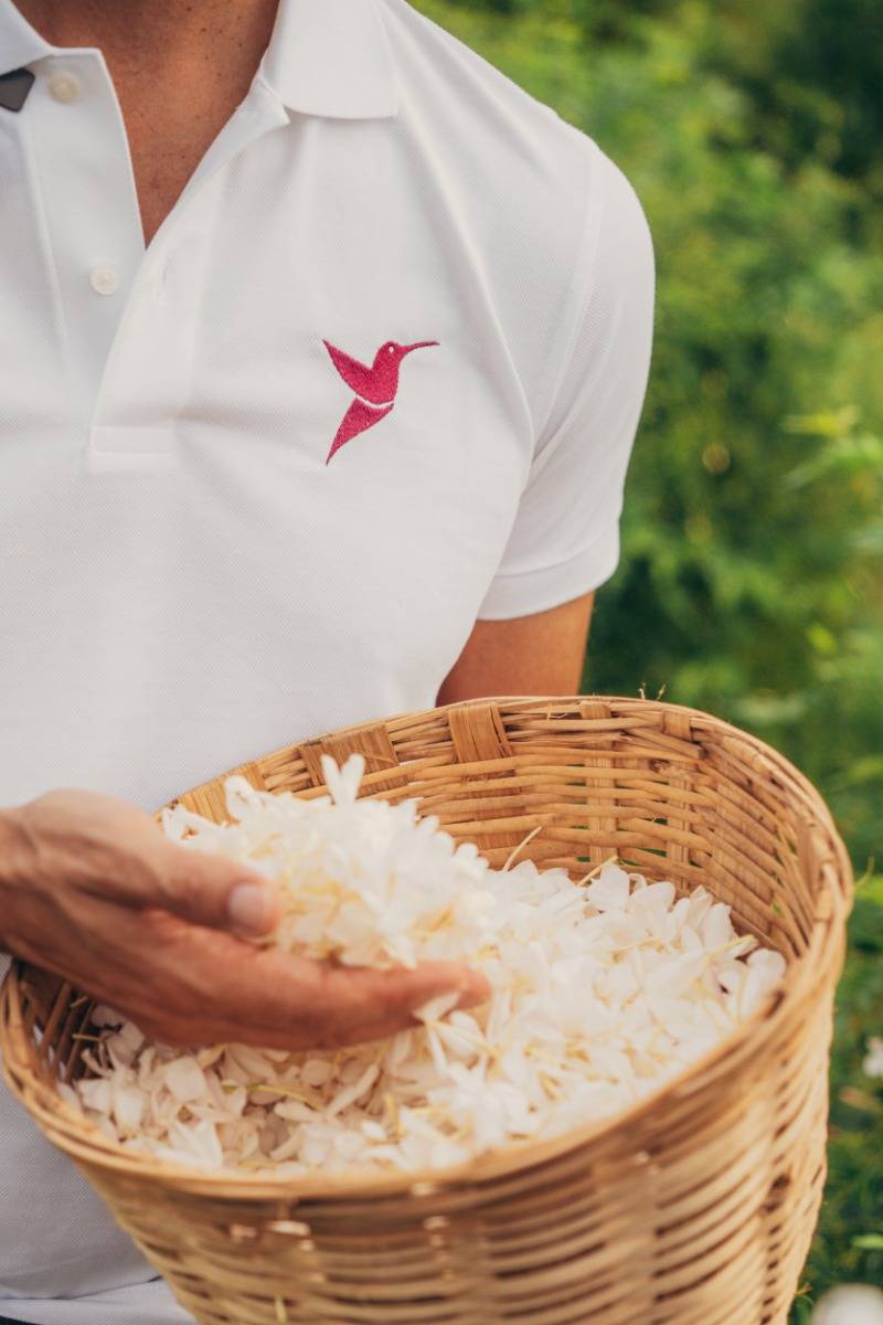 Cultivada principalmente en la India, esta delicada flor blanca también se conoce como el "oro blanco" de la perfumería, ya que se necesitan unos 600 kg de flores para crear un solo kilo de absoluto, un extracto muy preciado que se utiliza en la composición de perfumes. El jazmín posee un aroma floral único y reconocible, rico, sensual y elegante, que lo convierte en un ingrediente esencial en perfumería.